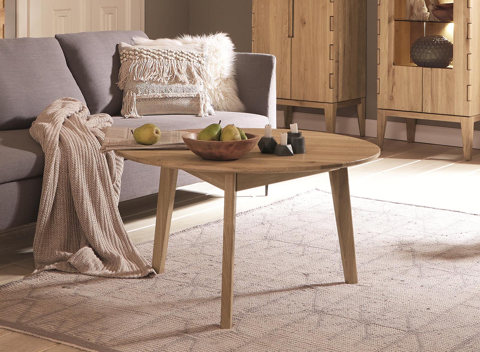 Doskonałe połączenie świeżości formy i surowego piękna starego dębu.