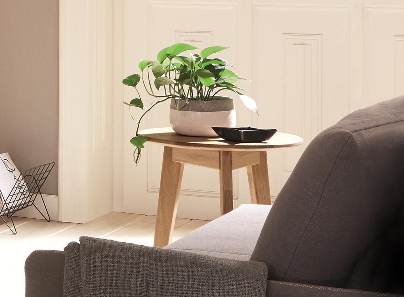 Doskonałe połączenie świeżości formy i surowego piękna starego dębu.