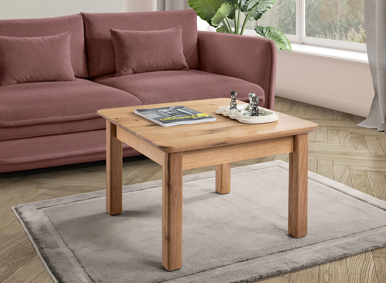 Doskonałe połączenie świeżości formy i surowego piękna starego dębu.
