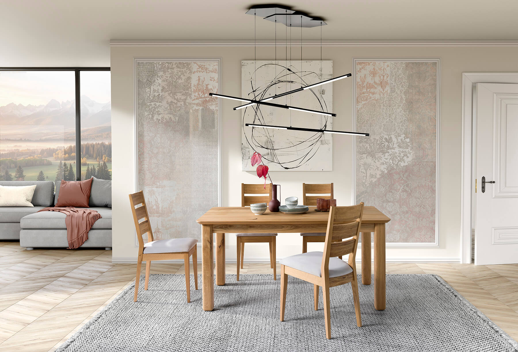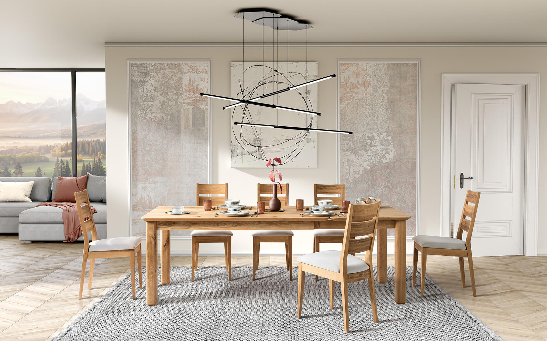 Doskonałe połączenie świeżości formy i surowego piękna starego dębu.