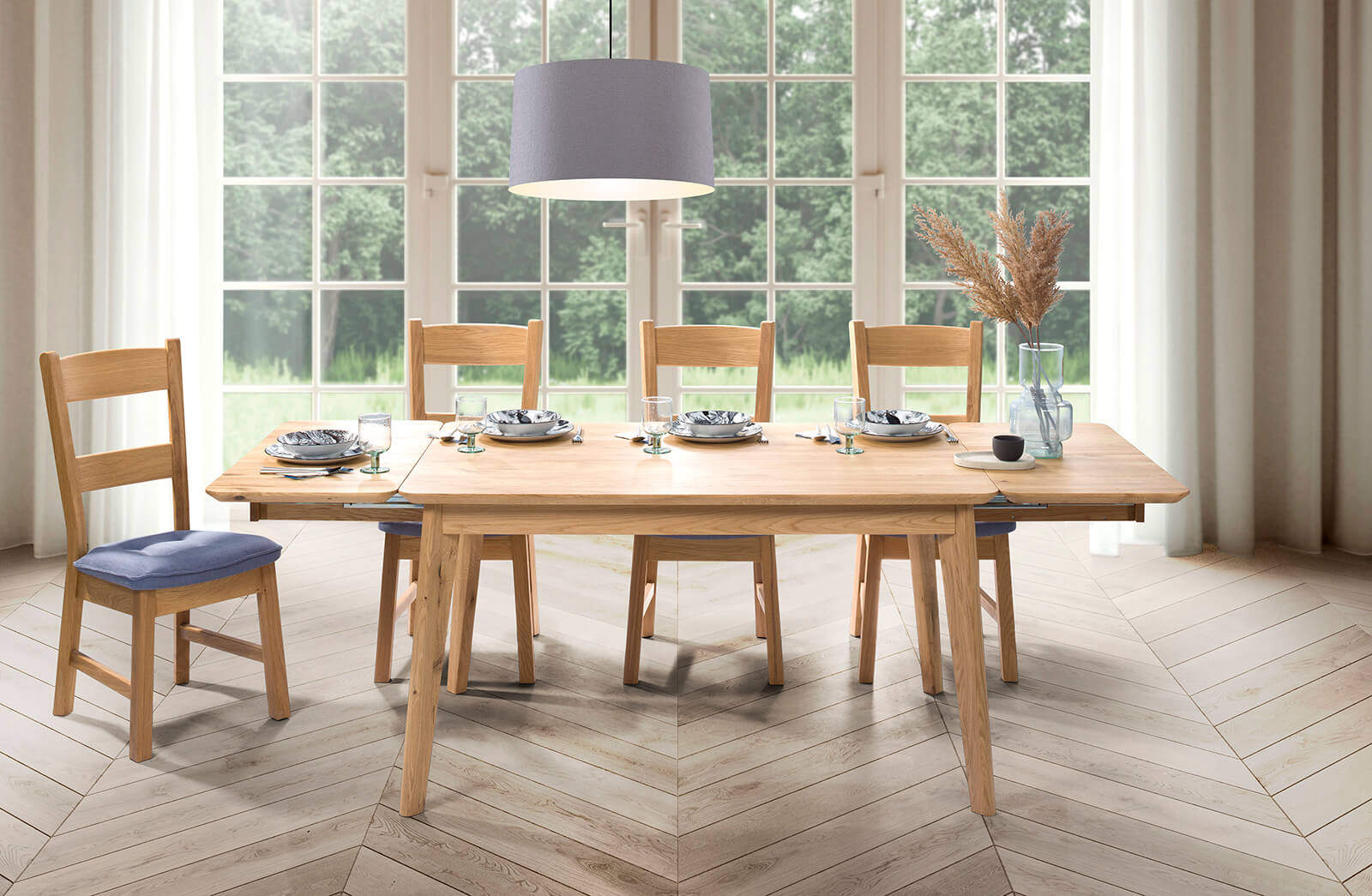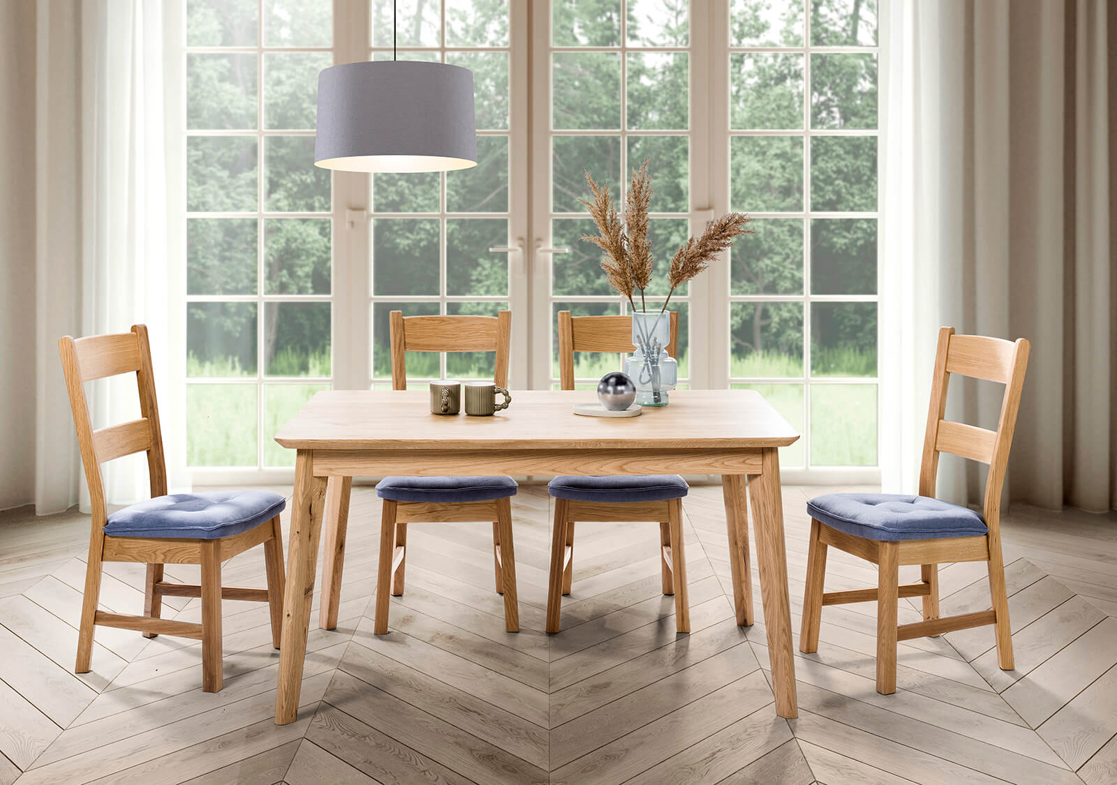 Doskonałe połączenie świeżości formy i surowego piękna starego dębu.