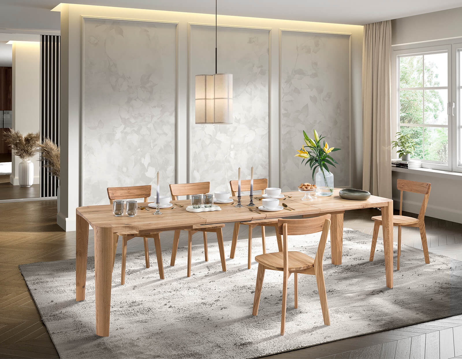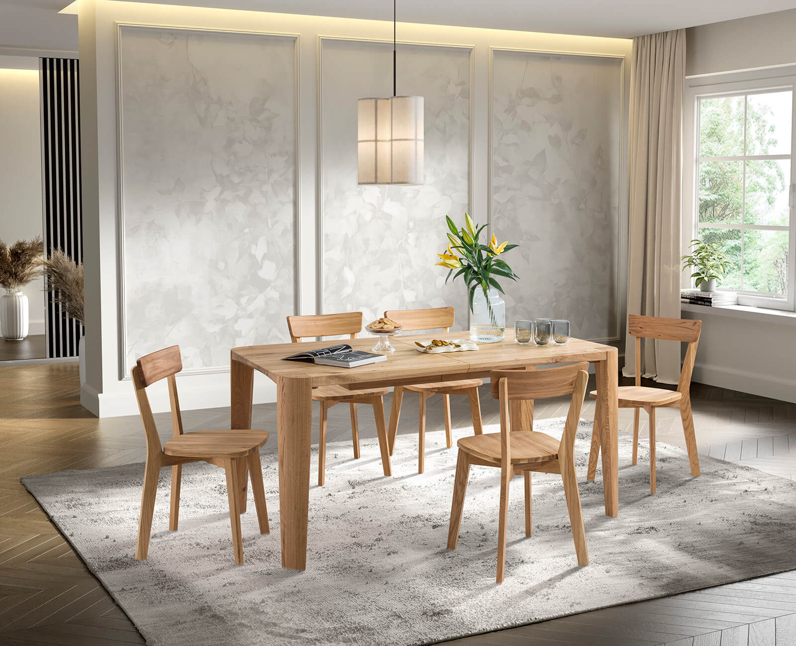 Niepowtarzalny design stołu dębowego wypełni Twoją przestrzeń ciepłem naturalnego drewna.